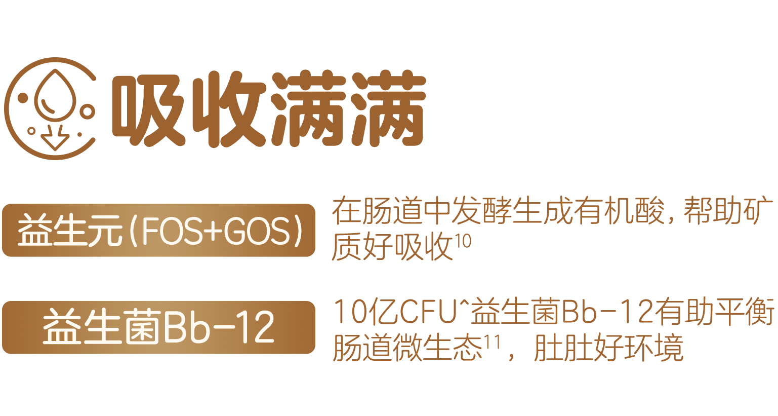 *满格比喻孩子在成长过程中包括骨骼力、自护力、智慧力、视力、吸收力以及活力在内的多个维度。↑本品钙含量为1100mg/100g,与儿童配方奶粉(代表值)钙含量为705mg/100g相比。